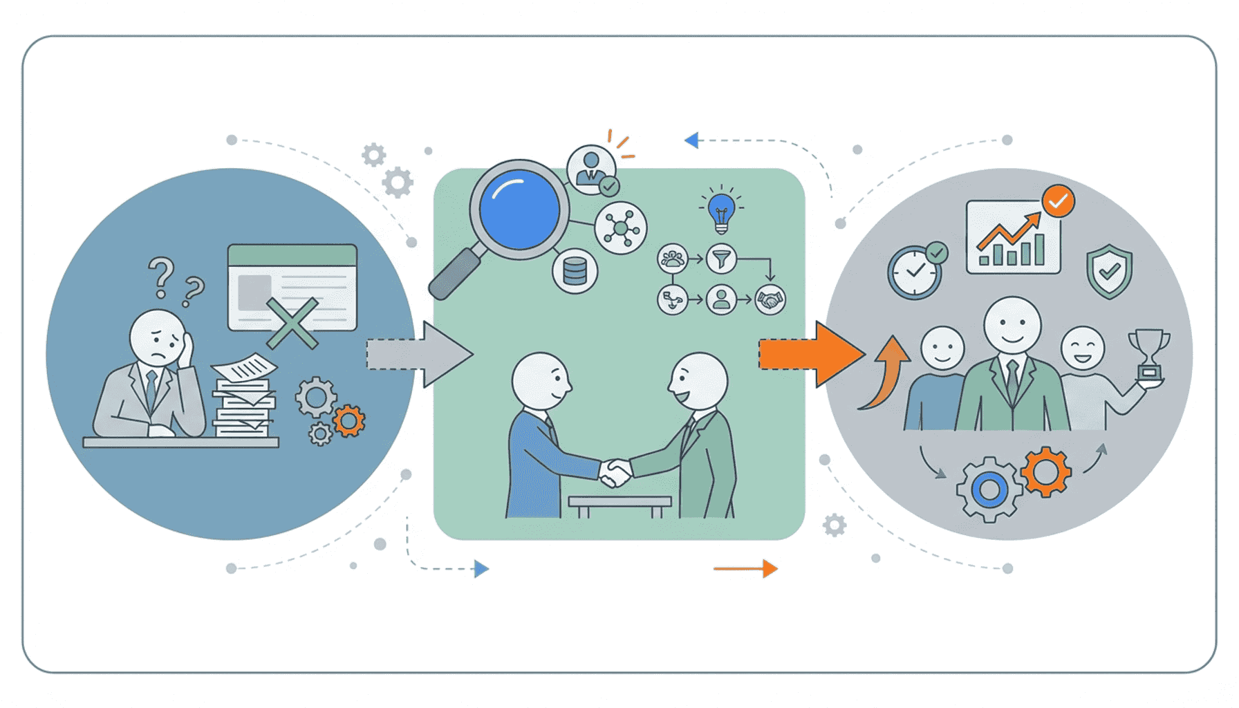 ヘッドハンティングのプロセスは、まず企業が求める人材の要件を明確にし、それに基づいて候補者をリサーチすることから始まります。その後、候補者にアプローチし、面談を経て最適な人材を採用します。この一連のプロセスには、専門のコンサルタントが関与し、企業と候補者の間を取り持ちと考えられましょう。