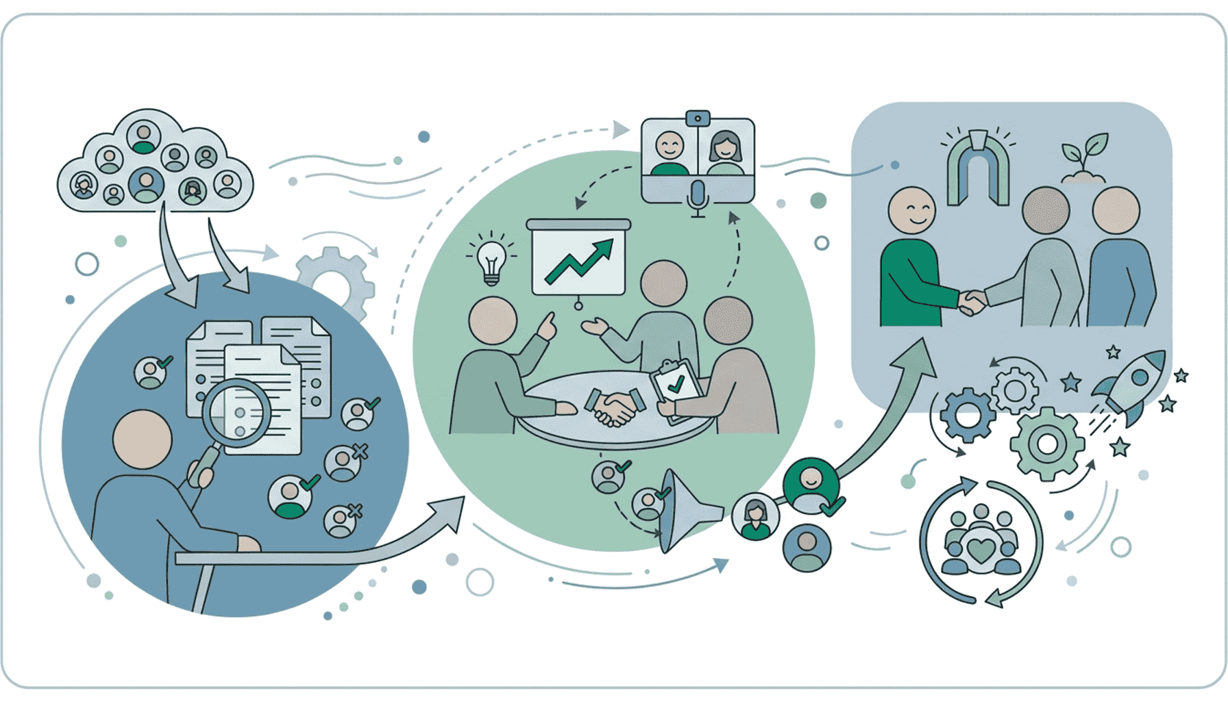 次に、実際の採用活動を進めます。アルムナイネットワークを活用して、再雇用の候補者を選定し、面接や条件交渉を行います。この段階では、元社員の外部での経験やスキルを評価し、企業のニーズに合致するかを慎重に判断しましょう。また、再雇用後のキャリアパスについても明確にし、候補者に対して魅力的な提案を行います。