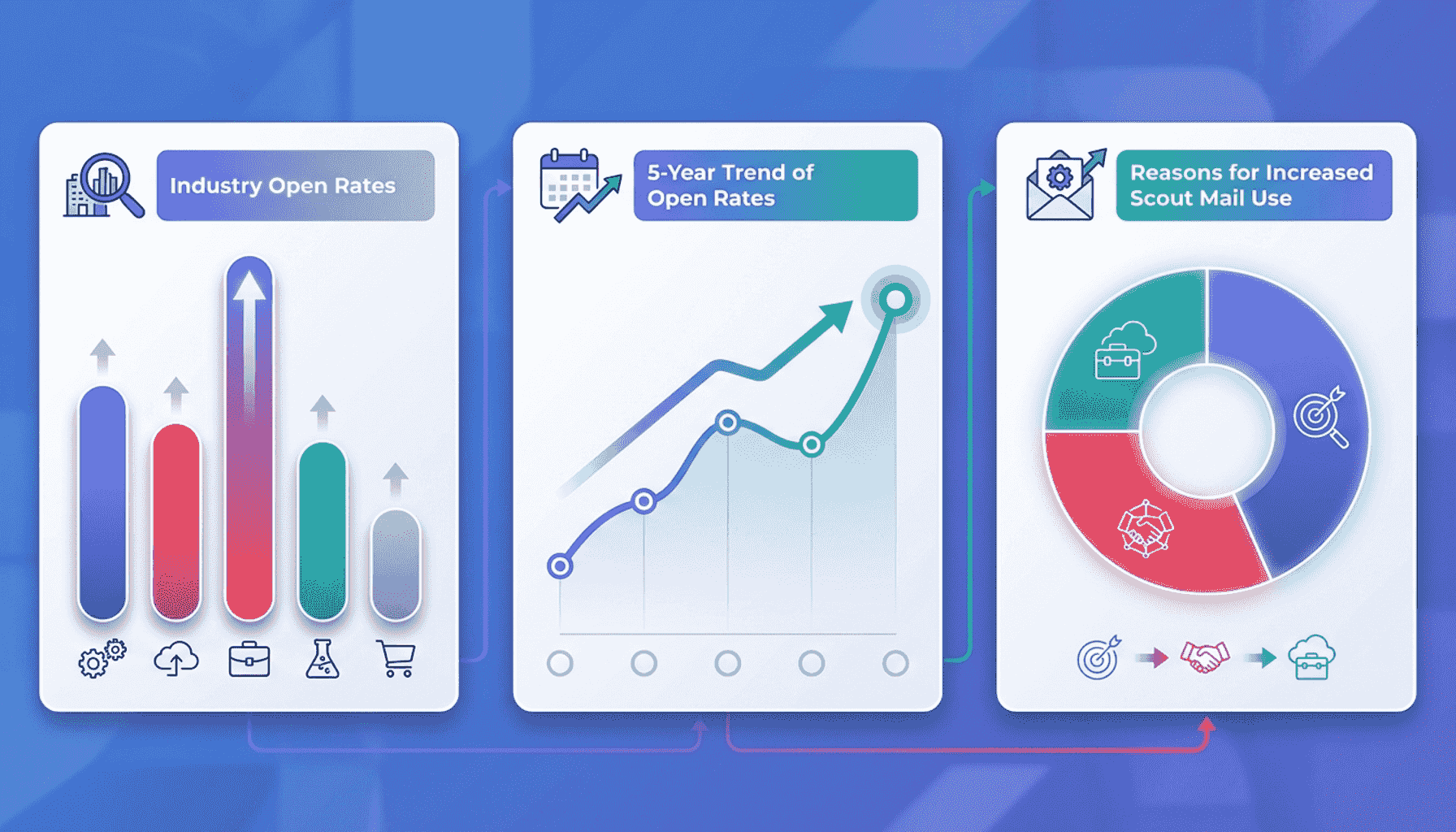 過去5年間のスカウトメールの開封率を振り返ると、全体的に上昇傾向にあることがわかります。これは、企業がスカウトメールの内容を改善し、よりパーソナライズされたアプローチを取るようになったことが一因です。また、メールマーケティングツールの進化により、開封率を高めるためのデータ分析が進んでいることも影響しています。