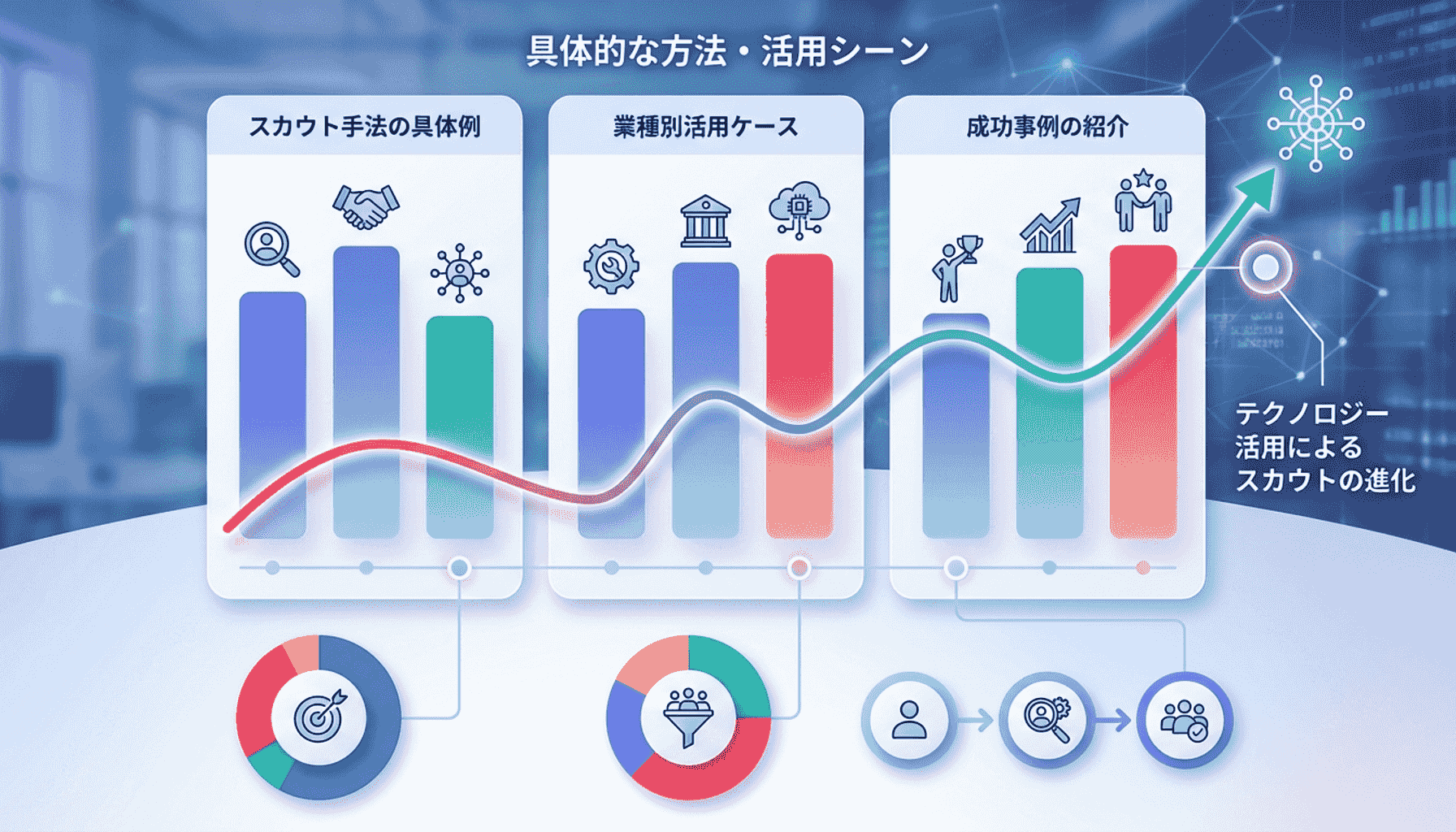 人材スカウト支援は、さまざまな場面で活用されています。ここでは、具体的な手法や業種別の活用ケースを紹介します。