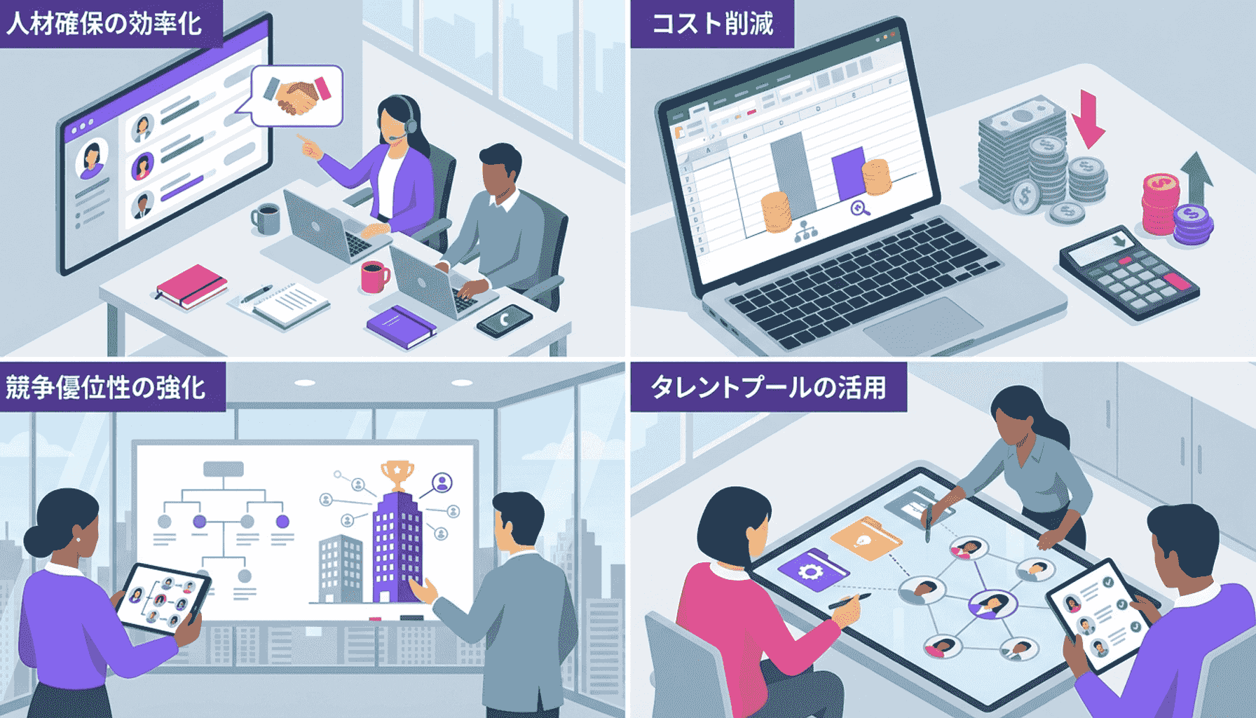スカウト採用には多くのメリットがあり、特に人材確保の効率化、採用コストの削減、そして競争優位性の強化が挙げられます。これらのメリットを詳しく解説します。